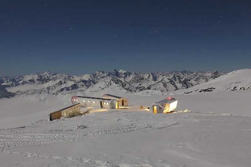 В России необычных отелей тоже хватает, но самый-самый (по нашему скромному мнению) – высокогорный приют на южном склоне Эльбруса. 3912 метров над уровнем моря, а комфорт – почти как дома. Жилых модулей два – «Восток» и «Запад», в каждом по 12 спальных мест. Есть ещё два: один служит в качестве гостиной-столовой, второй – технический, с санузлами и помещением для сушки одежды.