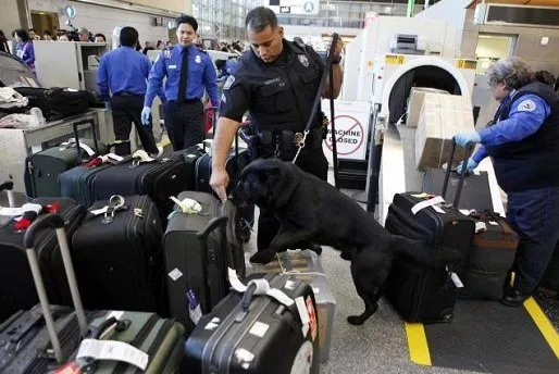 В некоторых аэропортах, весь багаж проходит еще одну проверку - специально обученными собаками. Они ищут не только наркотики, но и взрывчатые вещества, а также продукты питания, запрещенные к перевозке.
