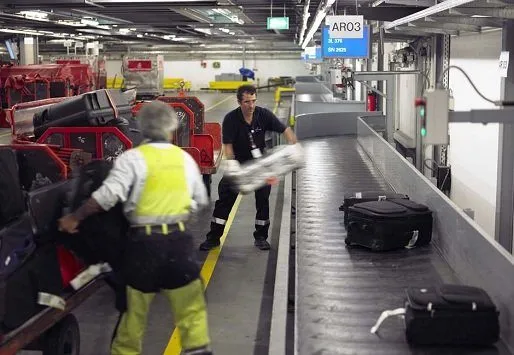 По прилету, происходит обратная процедура. Багаж выгружают из тележки на ленту.