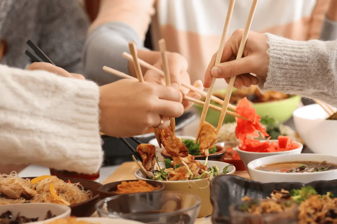 Одна из самых главных традиций в китайской культуре — делить блюда на всех людей за столом. Во время еды в центре стола располагается несколько блюд, каждый берёт порцию из общей чаши или тарелки. Так создаётся атмосфера общности и единения, а все участники стола могут сделать свой обед лучше, попробовав разные вкусы.