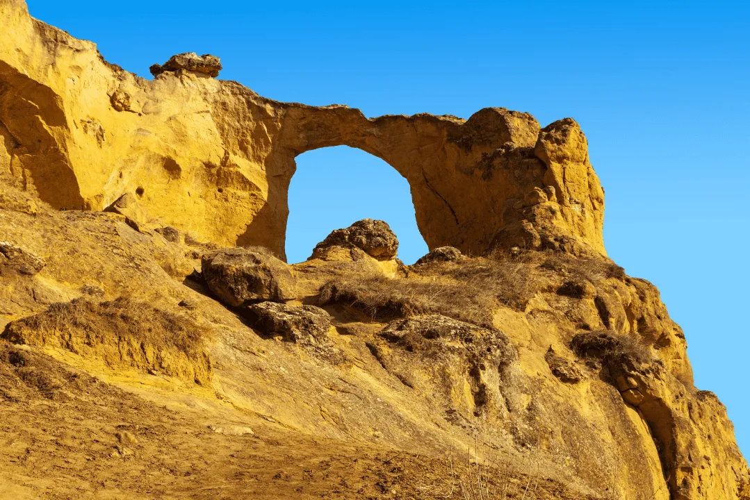 Этот природный памятник является частью Боргустанского хребта, который сложен песчаником, из-за чего имеет светлую окраску. Горные породы выветрились, в результате в скале образовалось восьмиметровое отверстие. Загляните в него, чтобы увидеть восхитительную панораму на дорогу Учкекен — Кисловодск. Кстати, после восхищения видами на город, обязательно загадайте желание. Местные говорят, что всё сбывается. Чудеса, да и только!