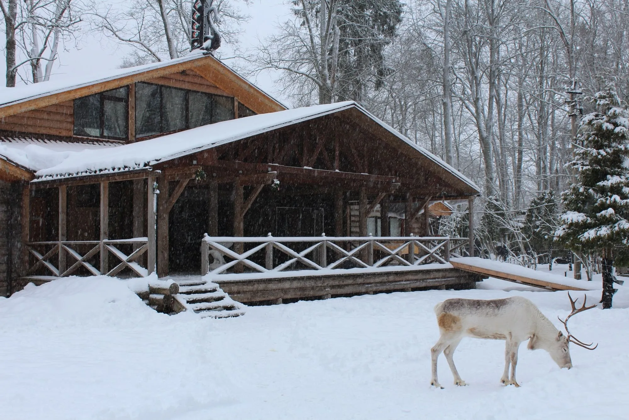 Для взрослых здесь оборудованы места для рыбалки, есть возможность арендовать лодку или каяк, чтобы поплавать по озеру, обустроена русская баня. Дети же могут покормить животных, посмотреть на енотов, поиграть в дартс или сходить на организованную экскурсию. Кстати, если вы ищете, куда поехать в России осенью, обязательно приглядитесь к этому месту — с начала октября цены на аренду домика тут становятся намного ниже.