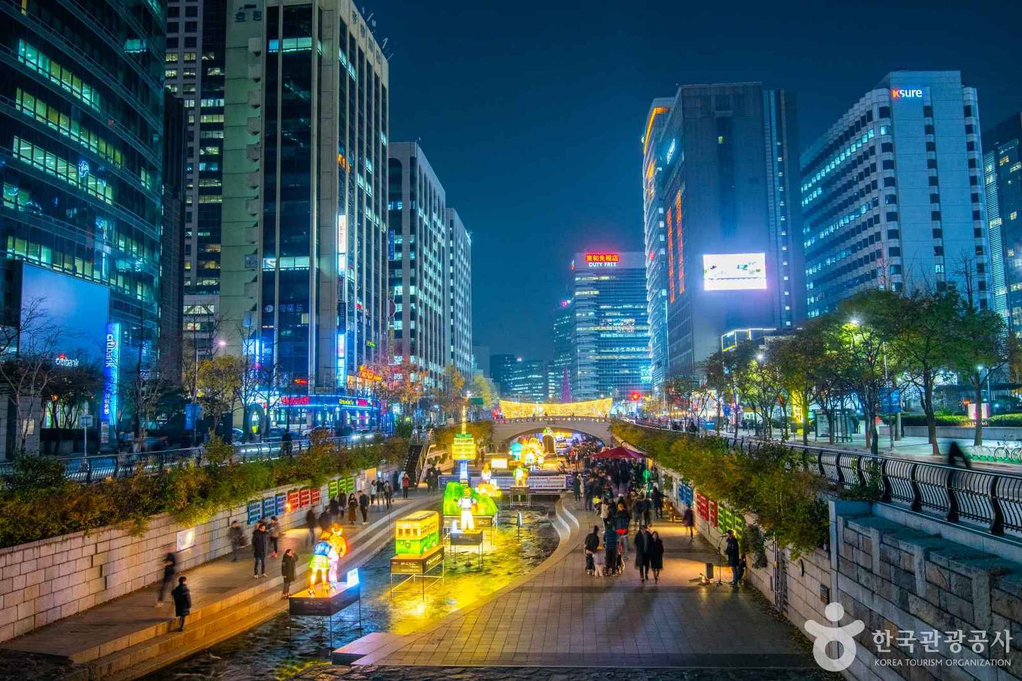 Поэтому начать осмотр осеннего Сеула лучше именно с парка. Тем более, что Чхонгечхон – это удивительный пример городской ревитализации, когда заброшенная и унылая территория превратилась в популярное место отдыха и символ возрождения Сеула. Длинный, узкий парк тянется на 11 километров через центр города.