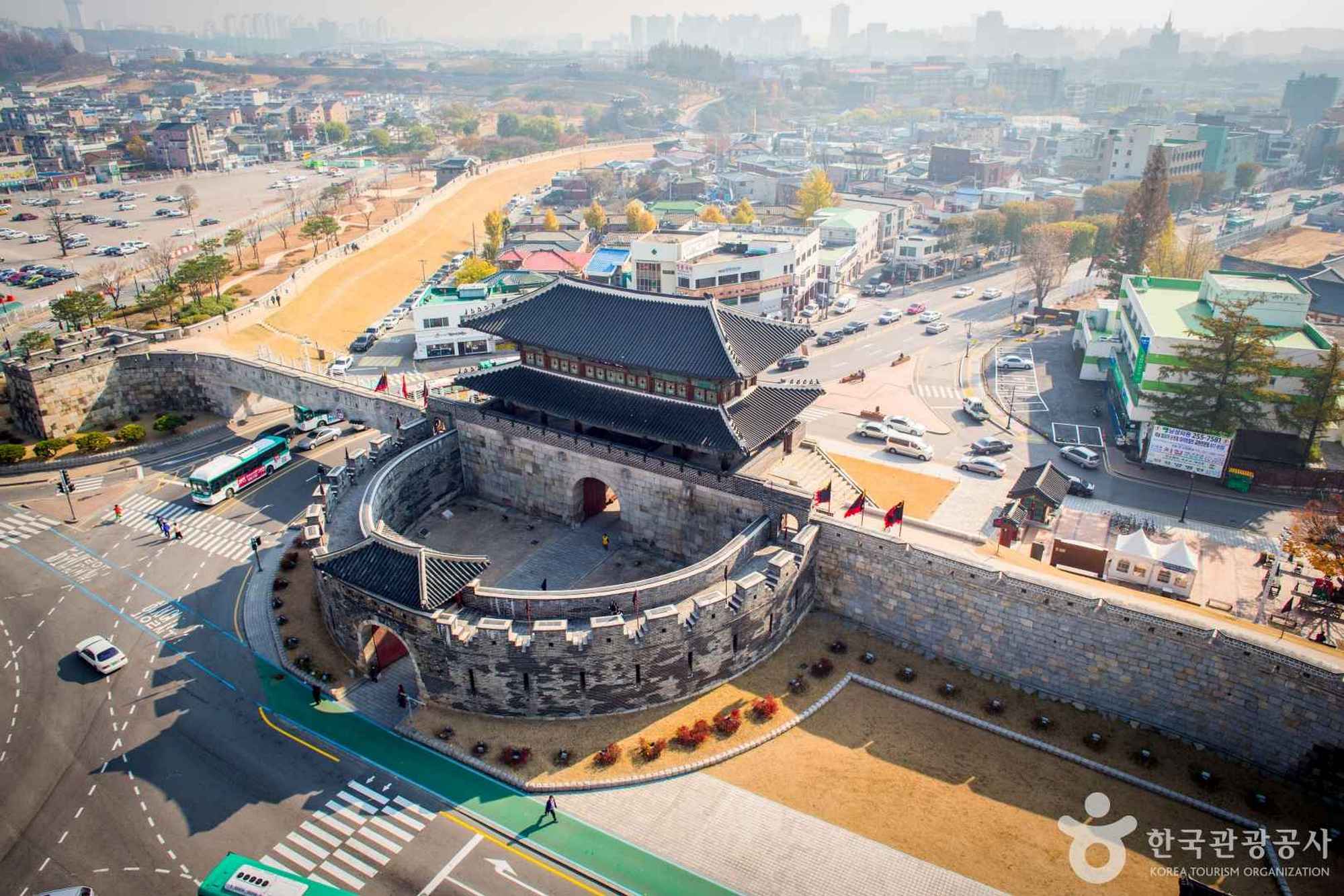 Памятник корейской истории, архитектуры и инженерной мысли, внесенный в список Всемирного наследия ЮНЕСКО. Крепость была построена в период с 1794 по 1796 год под руководством короля Чонджо из династии Чосон. При строительстве крепости использовались передовые для того времени технологии и инженерные решения, включая использование подъемных кранов и кирпича, так что уже тогда Кёнгидо было на роду написано стать центром инноваций.