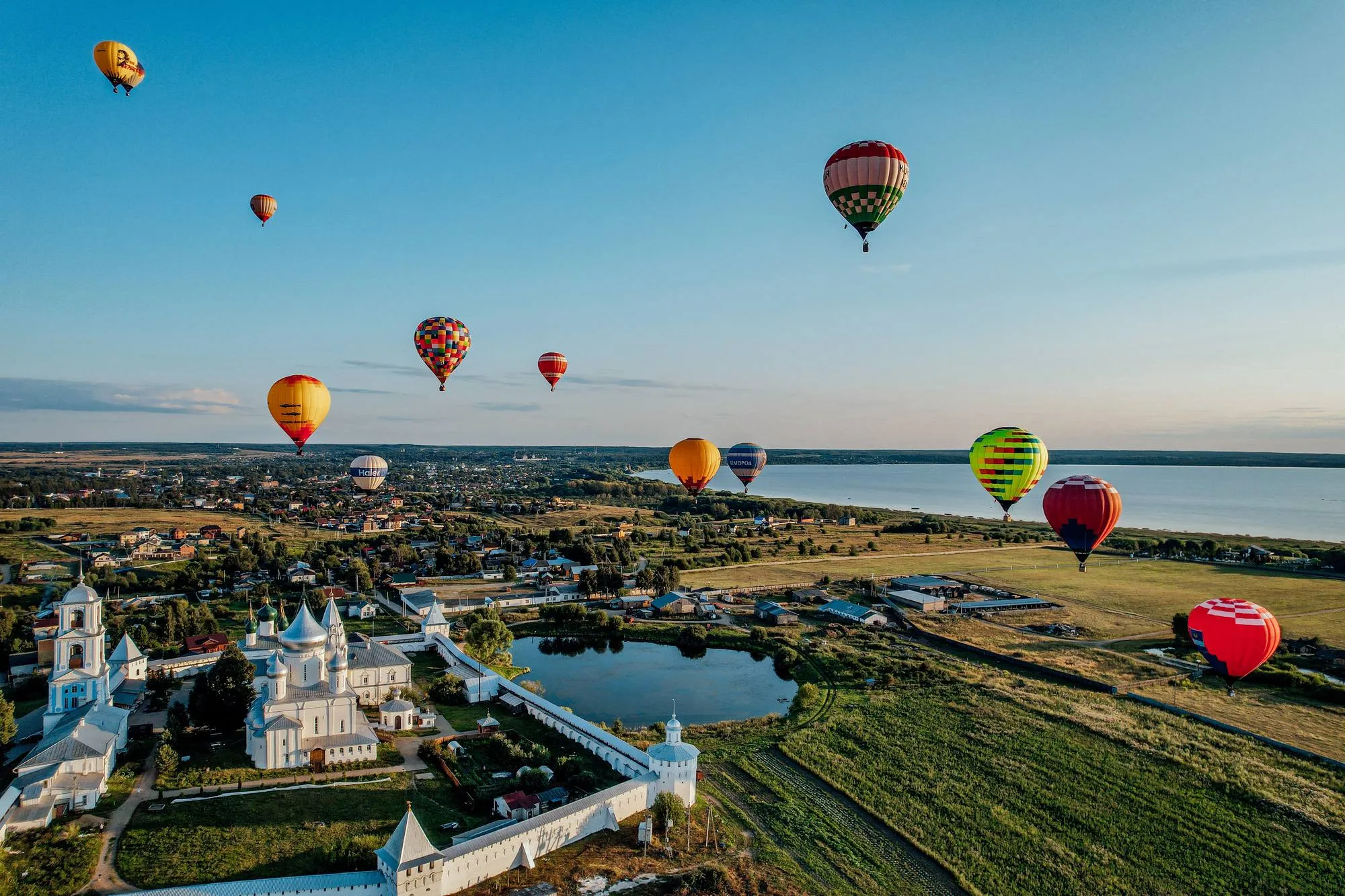 Озеро Плещеево, где катаются сёрферы и кайтеры, тихая речка Трубеж, 5 монастырей, 40 церквей, земляные валы XII века – всё это входит в программу полёта в Переславле. А всего-то нужно отъехать от Москвы на 120 км! Ещё здесь проводят тематические фестивали – «Золотое кольцо России» 16-20 июля 2025 года и «Золотая осень» в Суздале 5-7 сентября.