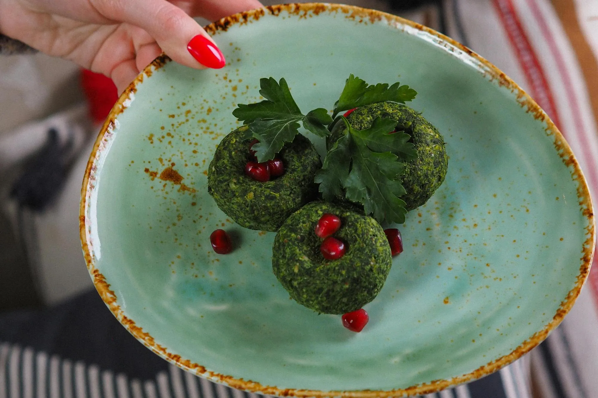 Это идеальная холодная закуска для тех, кто хочет чего-то лёгкого (по грузинским меркам). Пхали – это перетёртые овощи или травы, смешанные с густой пастой из грецких орехов, чеснока, кинзы и граната. Самые популярные виды – из шпината (зелёные) и из свеклы (бордовые). Они выглядят как яркие шарики, украшенные зёрнами граната.