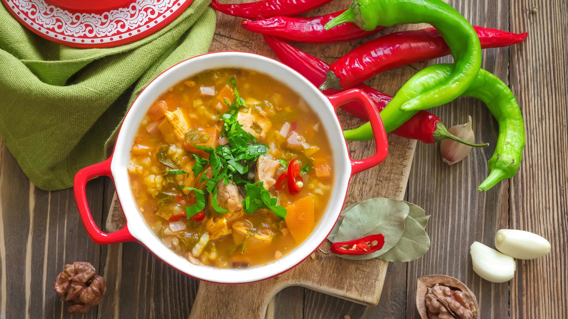 Забудьте то, что вы ели в столовых. Настоящий грузинский харчо – это густой, наваристый и очень пряный суп из говядины с рисом, грецкими орехами и кислым сливовым пюре (тклапи). Он согревает мгновенно. Важный нюанс: в Грузии есть также «харчо по-мегрельски» – это не суп, а второе блюдо, мясо в густом ореховом соусе. Уточняйте у официанта, что именно вы заказываете.