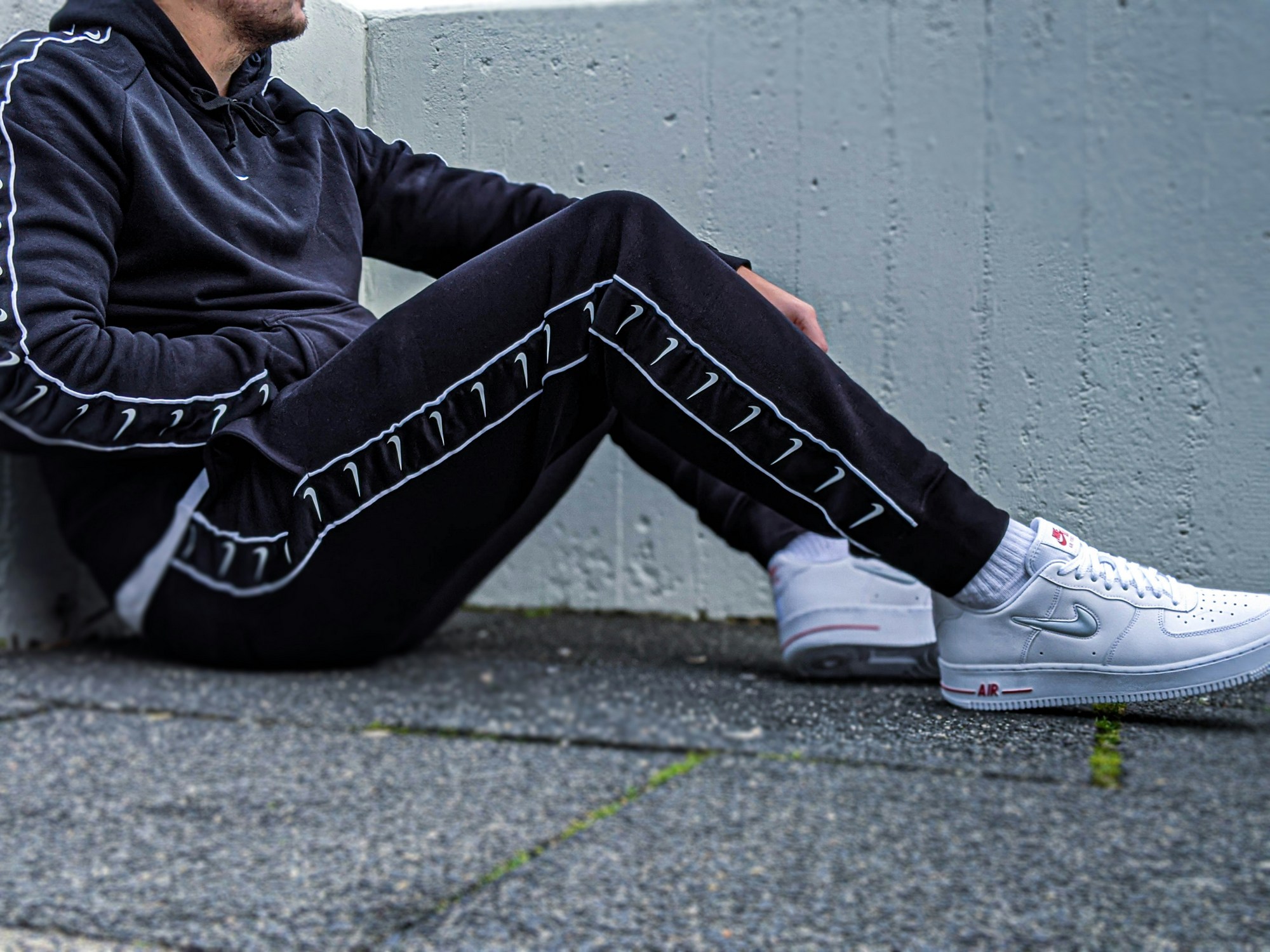- Джоггеры или спортивные штаны: идеальный вариант. Выбирайте модели из качественного хлопка с добавлением эластана. Они мягкие, не давят и выглядят достаточно опрятно для города.