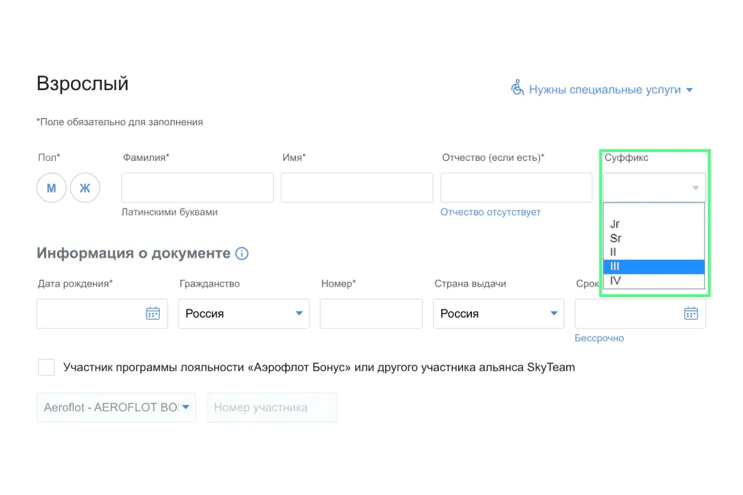 Как заполнять суффикс при покупке авиабилета