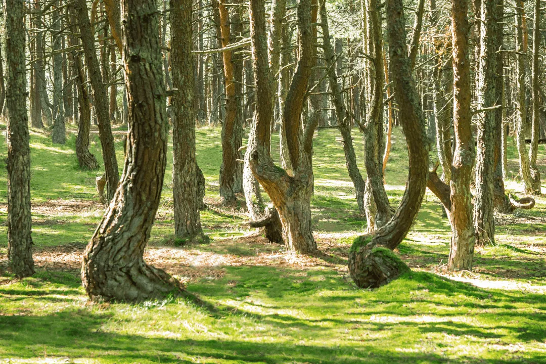 Любопытно, что учёные до сих пор не пришли к единому мнению, что так изменило форму стволов. Кто-то считает, что всё из-за гусениц, которые повредили верхушечные почки, и вот результат. Некоторые предполагают, что всё дело в климате и сильных ветрах, которые меняли направление роста деревьев. В общем, сколько людей, столько мнений. Тут уж выбирайте понравившуюся версию и передавайте её другим.