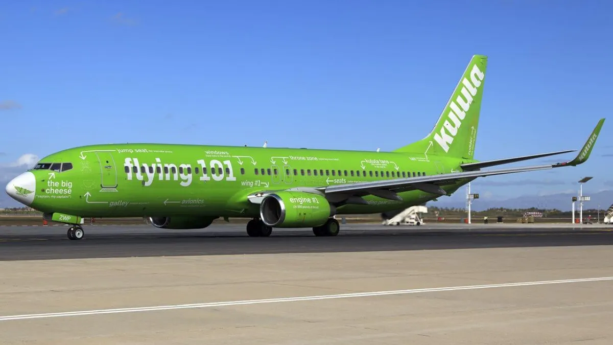 Хотя компания Kulula прекратила полёты, их знаменитая кислотно-зелёная ливрея Flying 101 навсегда останется в учебниках по маркетингу. Весь корпус был покрыт стрелками-подсказками: «место капитана», «передняя дверь», «уборная» и легендарная фраза над самописцем: «Чёрный ящик (который, на самом деле оранжевый)». Отличный пример того, что авиация может быть остроумной.