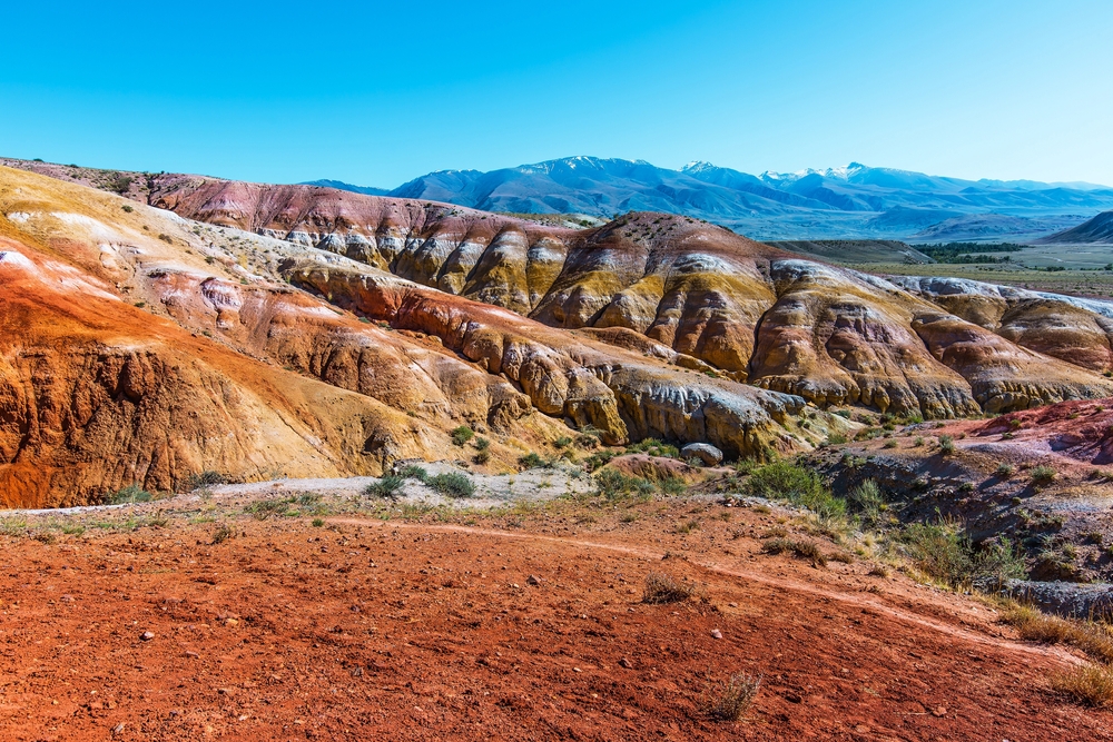 Это, без преувеличения, самое известное и самое «марсианское» место в России. Разноцветные горы в долине реки Кызыл-Чин в Горном Алтае – не фотошоп, а настоящая природная палитра, созданная миллионы лет назад.
