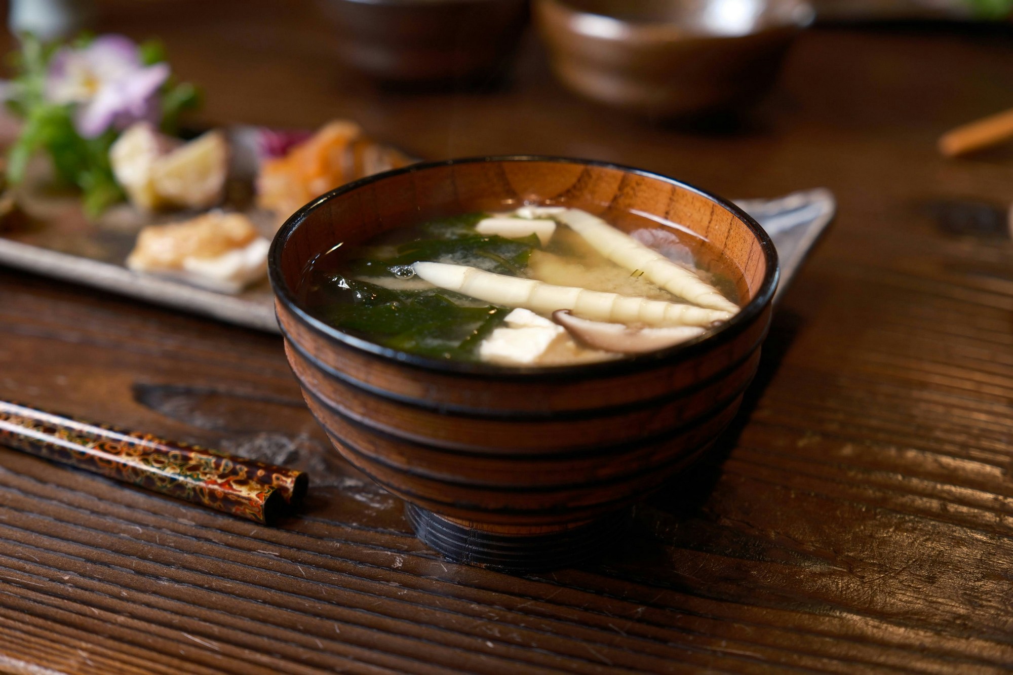 Суп из мисо пасты, бульона даси, тофу и водорослей. Но не стоит рассматривать его как аналог любого стандартного русского супа: аналогичной сытности тут нет. Мисо суп обычно подают в качестве гарнира или закуски к традиционным завтракам, обедам и ужинам. Считается, что его сложный вкус помогает улучшить качества основного блюда.