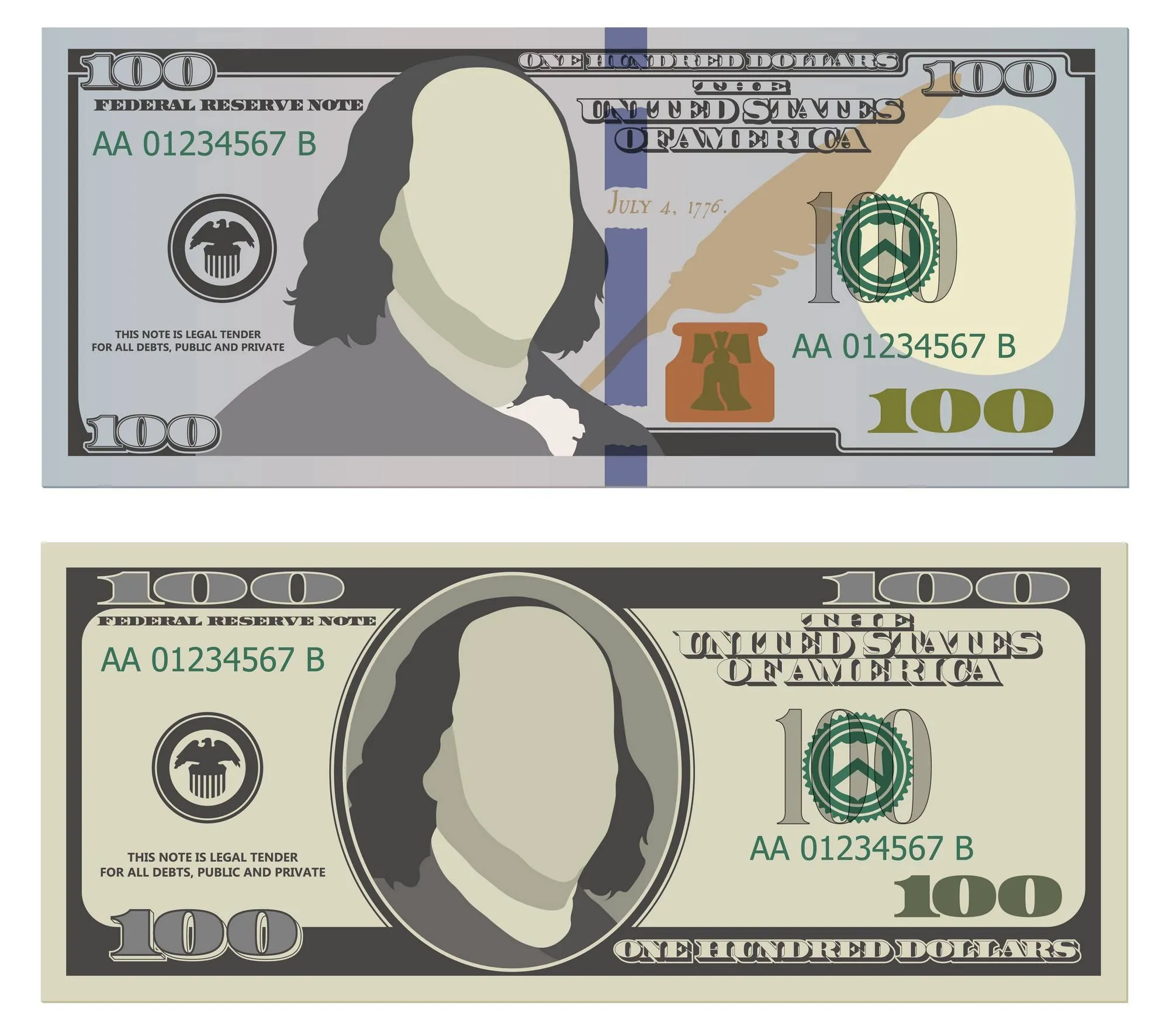 «Раз новые – это банкноты от 2013 года и далее, то по дате их и отличают!» – скажете вы. В принципе да, так тоже можно. Но еще проще по виду: старые банкноты более темные и яркие, современные – гораздо светлее. Иногда можно встретить такое разделение: старые – «белые», новые – «синие». И это вполне соответствует реальности: на новых купюрах номиналом 100 долларов посередине располагается именно синяя полоса – голографическая защитная метка.