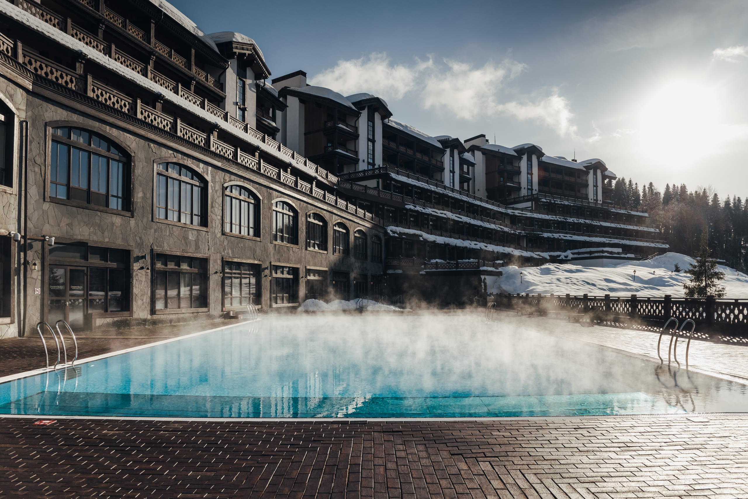 Этот новый и роскошный курорт в Карачаево-Черкесии быстро стал известен благодаря своему инфинити-бассейну. Это, возможно, самый высокогорный из всесезонных бассейнов в России. Он расположен на террасе отеля, откуда открывается просто головокружительный вид на горные вершины Архыза. Вода подогревается до комфортных +30°C. Ощущения, когда вы плывёте на краю обрыва, а вокруг вас только снег и горы, не передать словами. Это идеальное завершение дня после катания на лыжах.