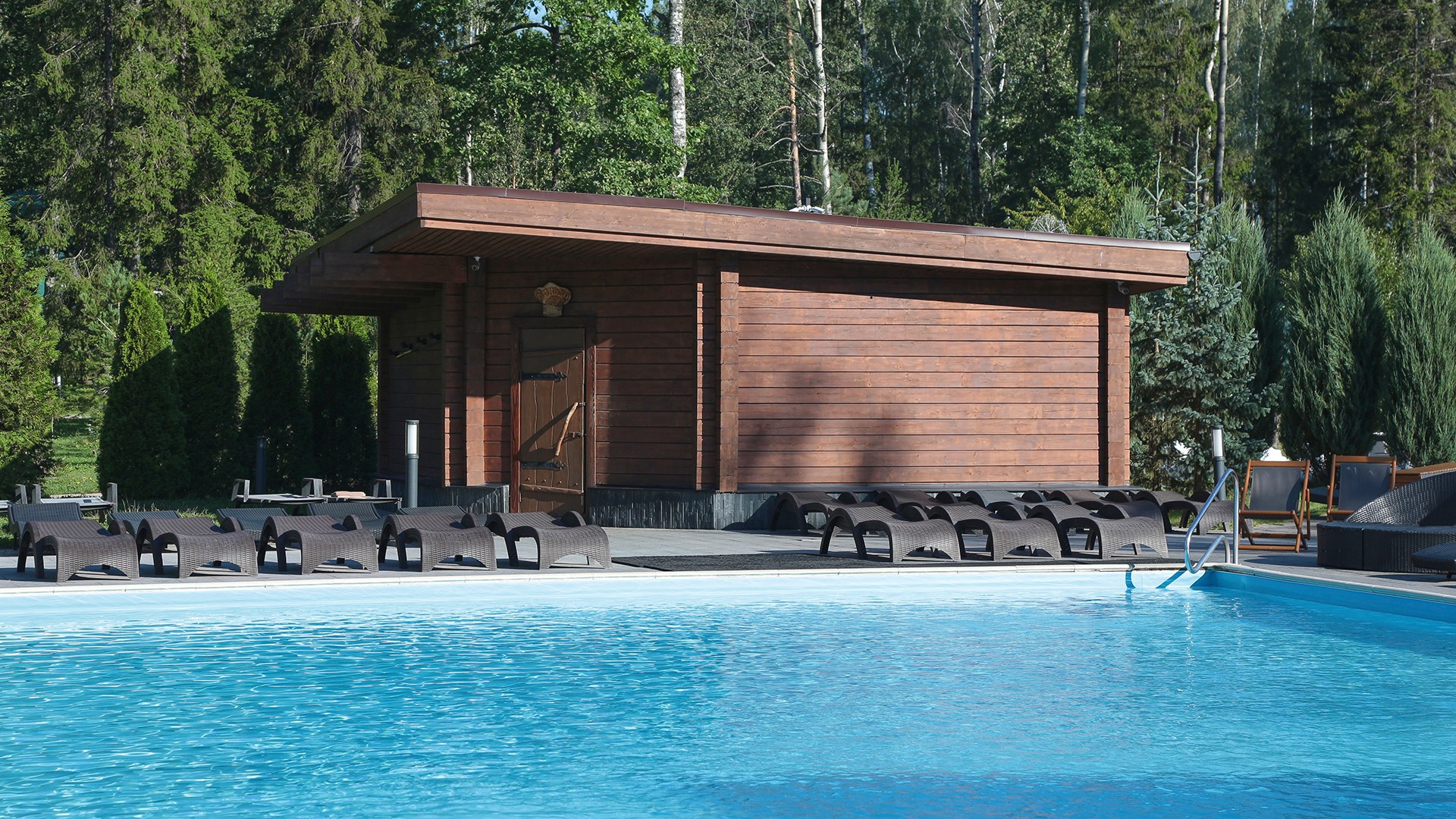 Для тех, кто ищет полноценный загородный отдых недалеко от столицы, этот отель на Минском шоссе – настоящая находка. Его всесезонный бассейн площадью 350 кв. м – один из самых больших в Подмосковье. Вода в нём подогревается до +30°C…+32°C. Бассейн оснащён гидромассажными установками, а рядом работает бар, так что можно наслаждаться тёплой водой и зимним лесом, попивая коктейль. Это идеальный вариант для семейного уик-энда, когда хочется сменить обстановку, не тратя время на долгую дорогу.