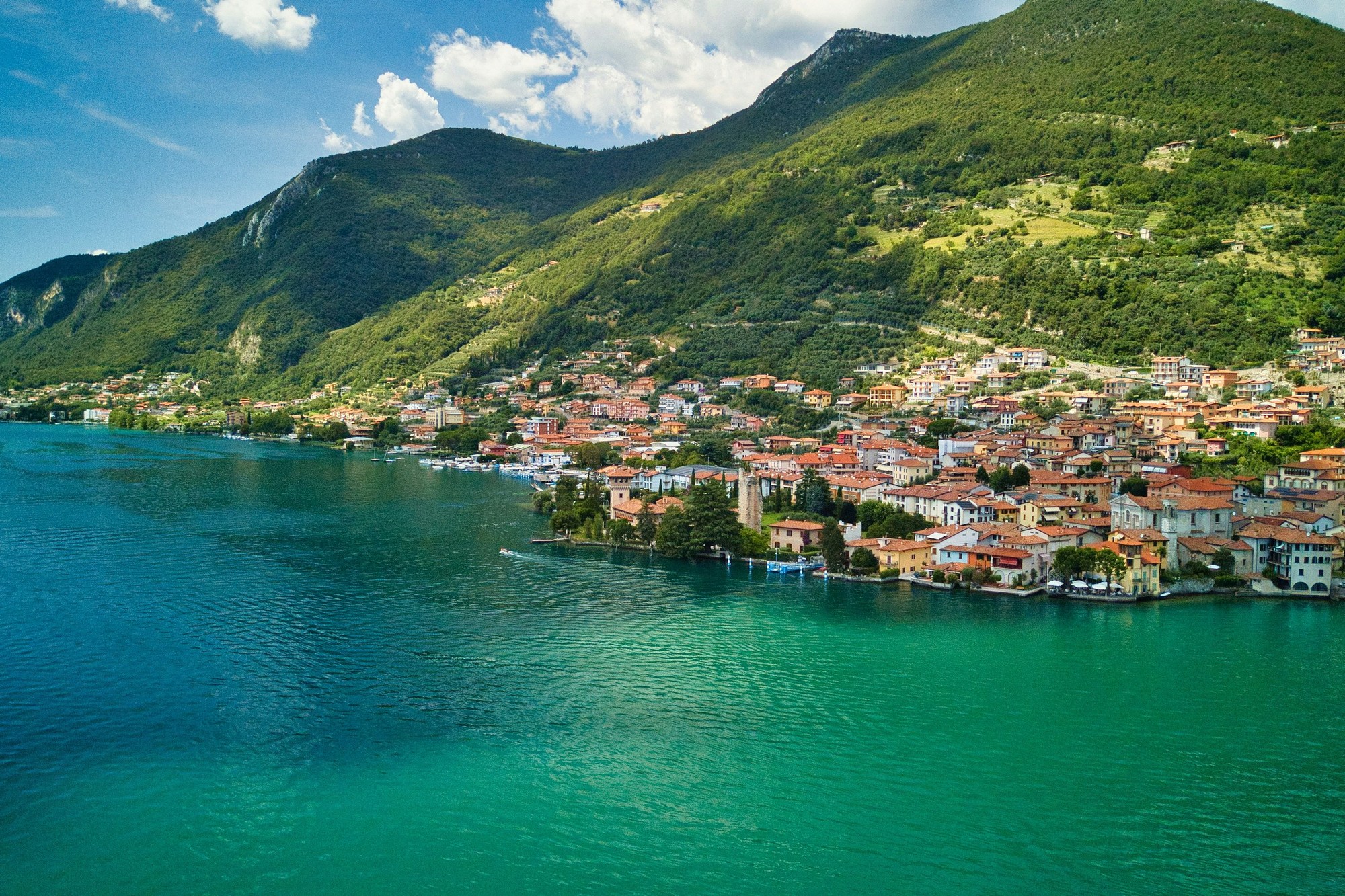 Переносимся в Ломбардию. Бирюзовые воды Изео со всех сторон обступают зеленые склоны и средневековые деревушки, берега озера усыпаны оливковыми рощами, а над зеркальной гладью возвышается Монте-Изола – самый большой остров в пресноводном озере Европы, с тихими улочками, древними замками и церковью Сан-Микеле с фресками эпохи Возрождения. Здесь время замирает: парусники скользят под лучами заката, а аромат лаванды смешивается с шёпотом волн. В окрестностях расцветают виноградники Franciacorta, знаменитые игристыми винами, а летом здесь проходит фестиваль Monte Isola Jazz Festival.