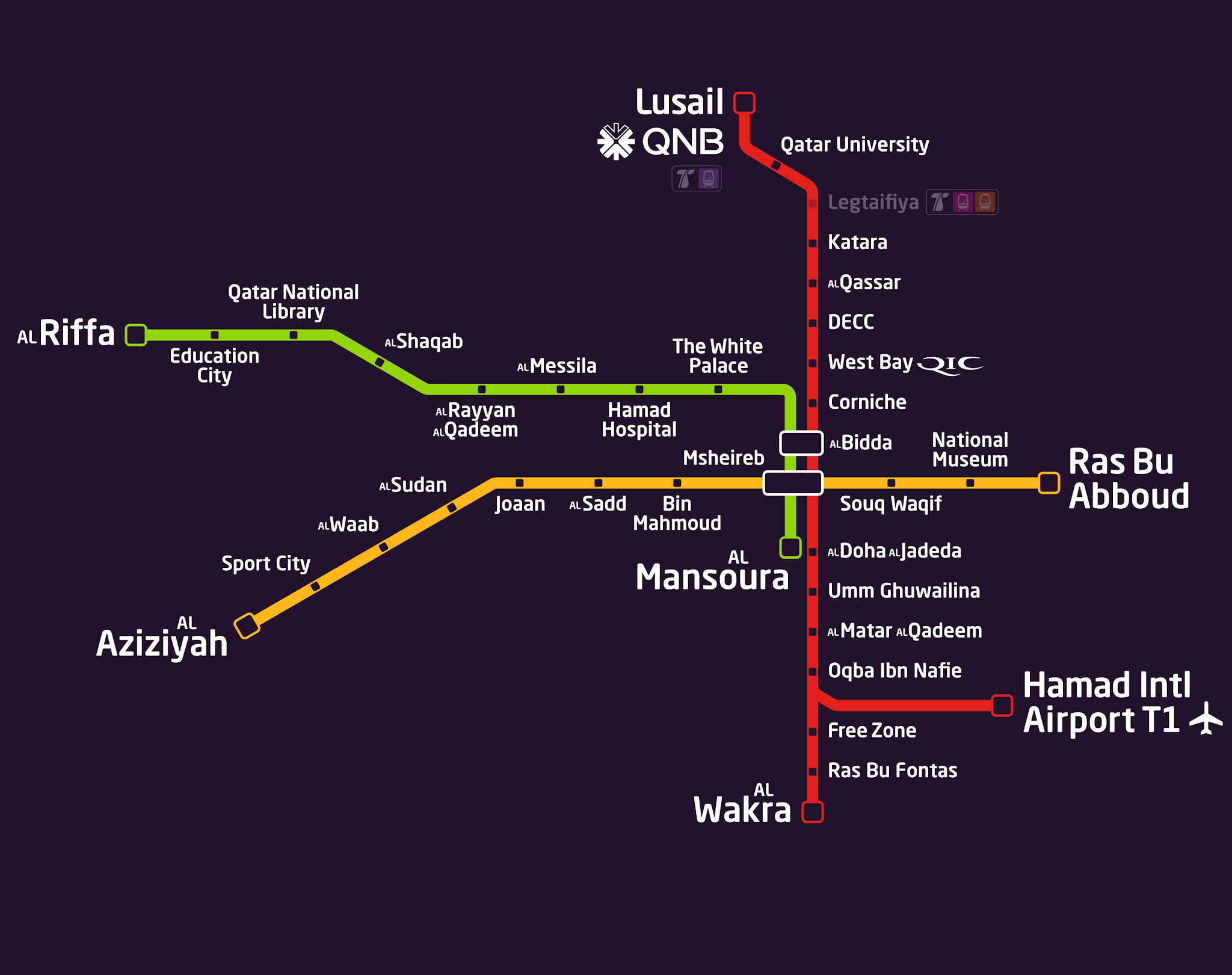 Подсказка: если скачаете приложение катарского аэропорта, оно поможет вам построить маршрут из любой точки до входа в метро и наглядно продемонстрирует его на карте.