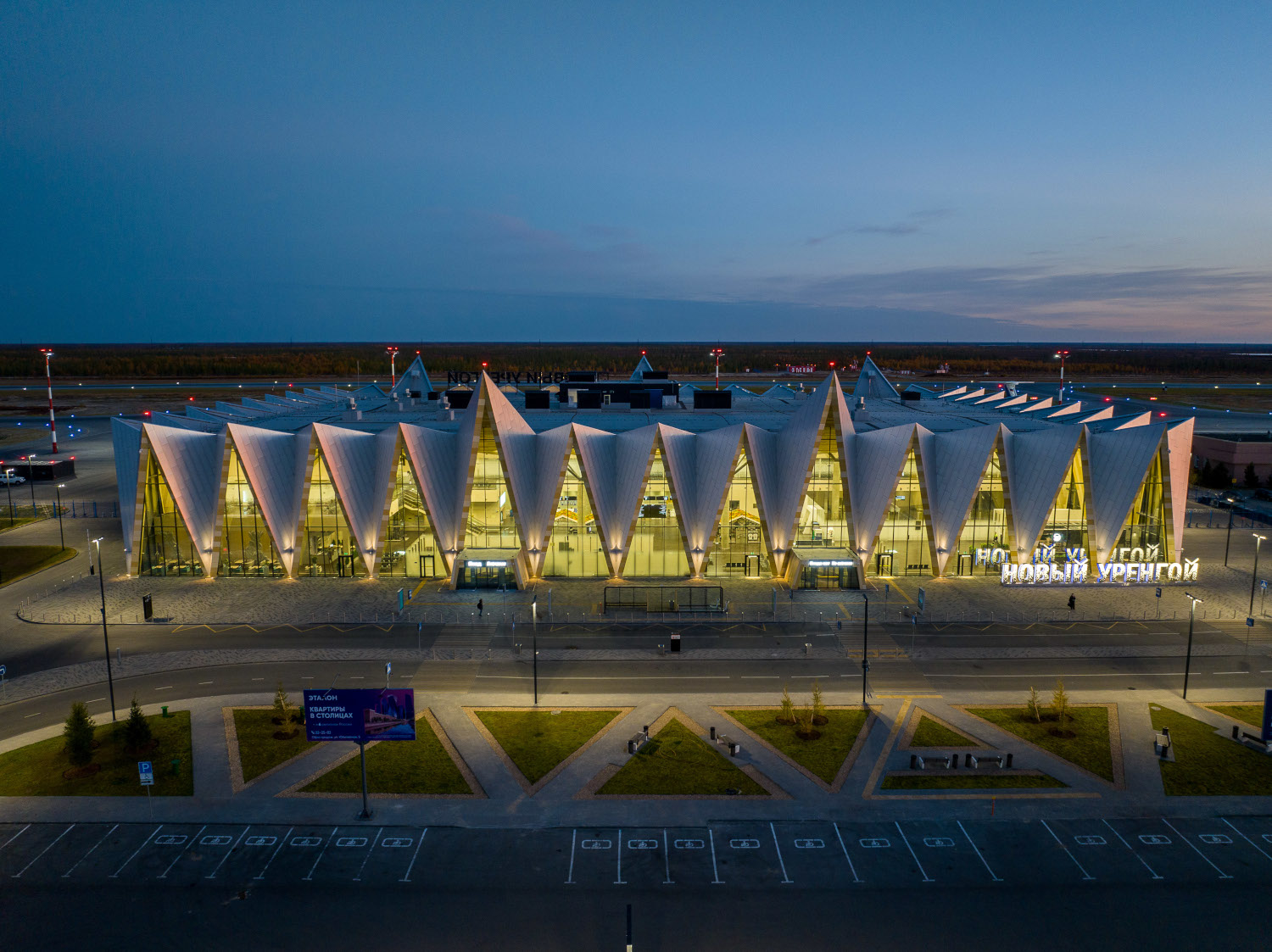 Неожиданным образом в наш список врывается Новый Уренгой. Но вы только взгляните на эту арктическую геометрию! Внешний вид здания, образованный из остроконечных «льдинок», имитирует чум – традиционное жилище народов Севера. Конструкция максимально использует естественный дневной свет, создавая светлые и воздушные пространства. Архитектурный проект заказали англичанам – бюро Twelve Architects & Masterplanners. Кстати, они же ответственны за облик аэропорта «Платов» в Ростове-на-Дону, построенного к Чемпионату мира по футболу 2018 года.