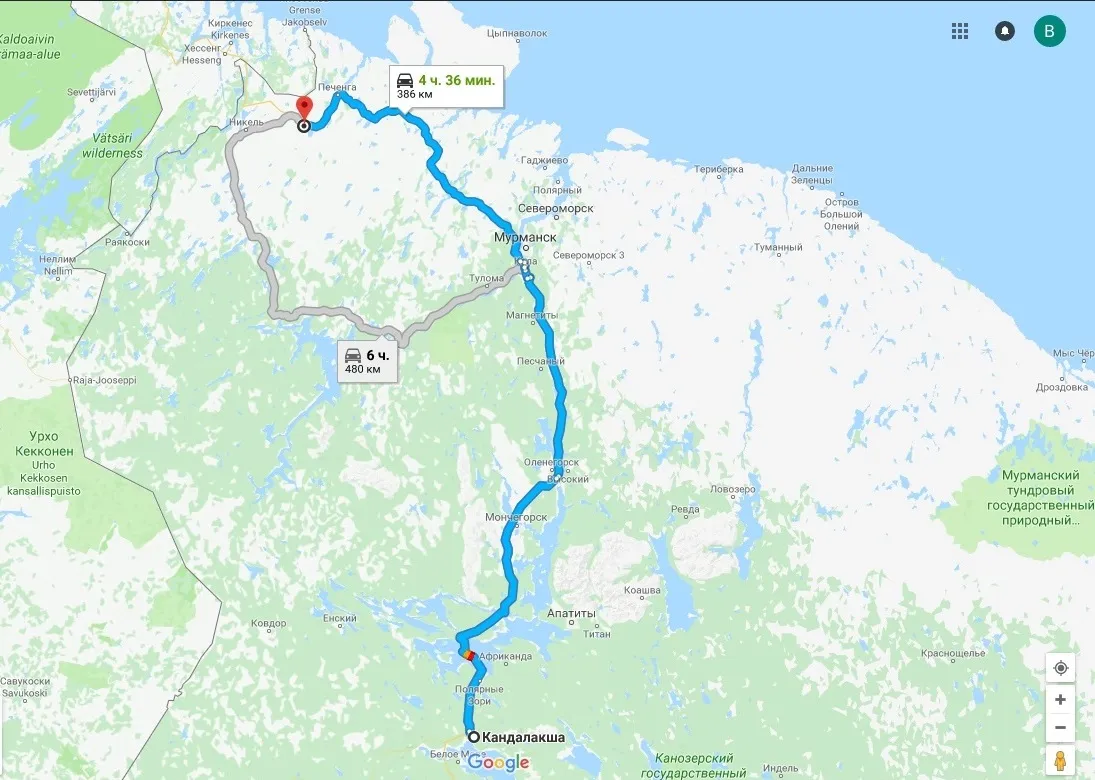 После прохождения самой северной сухопутной границы России красота за окнами автомобиля начала резко усиливаться. Солнце залило поля, заиграло ослепляющими отблесками в бесчисленных озёрах и в море. Показались первые изумительные фьорды.