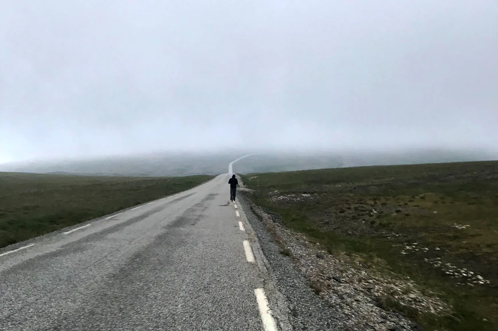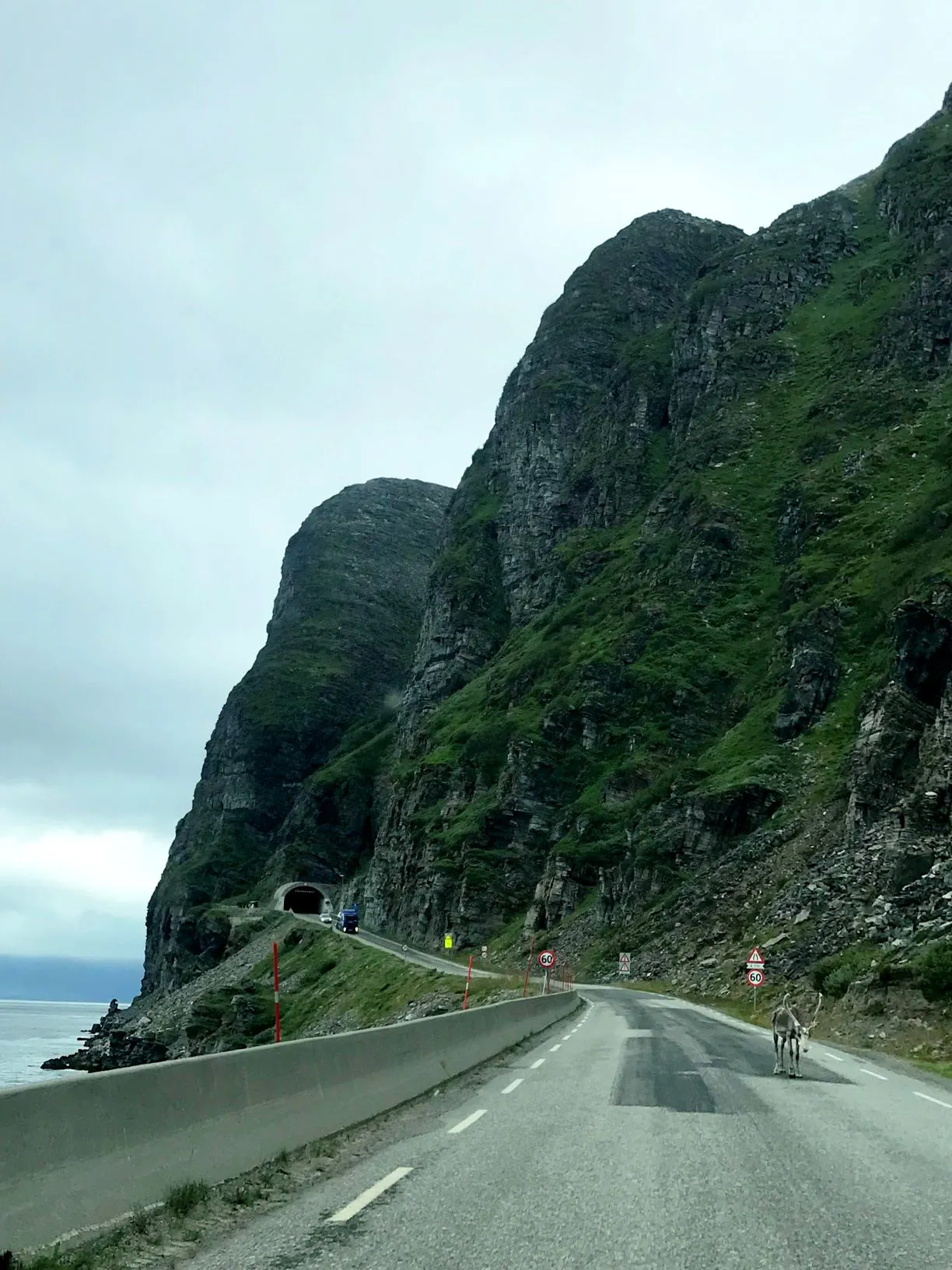Шесть километров до автостоянки дались нелегко: дорога просматривалась с трудом, сопротивление боковому ветру уже к четвертому километру изрядно вымотало. Ещё с большим сочувствием, чем друг на друга, мы смотрели на бегущих с острова велосипедистов, мотоциклистов, птиц, чьи попытки подняться в небо терпели неудачу, и оленей, которым негде было укрыться. А что же здесь осенью и зимой творится, если летом на ровном месте случается такой катаклизм? Добравшись до машины, решили, что безопаснее будет никуда не перемещаться и заночевать в ней же на стоянке. К утру погода лучше не стала, но возвращаться как-то надо было. Всё завершилось благополучно: мы спустились с горы и погода изменилась: ветер стих, туман рассеялся, прекратил моросить дождь. Хоть на материке уже не было тепло, как день назад, ни о какой разбушевавшейся стихии и не было речи.