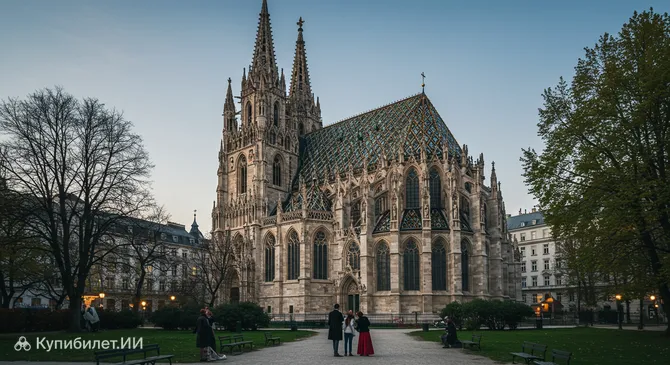 Вотивная церковь (Вотивкирхе), или Церковь Обета, – это величественный неоготический храм, одна из главных архитектурных жемчужин Вены, столицы Австрии. Её возведение стало актом благодарности за чудесное спасение императора Франца Иосифа I во время покушения на его жизнь в 1853 году. Это событие и послужило поводом для строительства этого впечатляющего сооружения, ставшего символом веры и преданности.