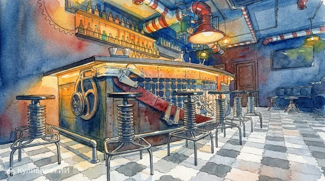 Этот бар, названный в честь легендарного ученого Майкла Фарадея, стал настоящим открытием для тех, кто ценит эстетику стимпанка. В интерьере, реализованном в Беларуси с невероятным вниманием к деталям, преобладают медь, дерево и индустриальные элементы, создающие ощущение присутствия в секретной лаборатории викторианской эпохи.