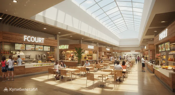 Фуд-корт — Торговый центр Plaza Expansion. Иллюстрация.