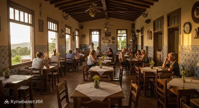 Любителям более плотного ужина в колоритной обстановке стоит обратить внимание на Ресторан Trilhos de Minas. Название переводится как «Рельсы Минаса», что подчеркивает связь заведения с историей региона. Здесь часто можно услышать живое исполнение в стилях MPB (бразильская популярная музыка) или мягкий рок, что создает идеальный фон для вечернего отдыха после долгих прогулок.