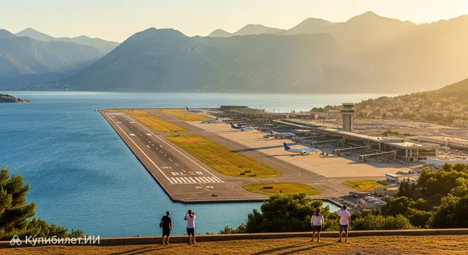 - Идеальная локация: Аэропорт расположен стратегически удобно для туристов — всего в 10–15 минутах езды от исторического Котора и примерно в 25–30 минутах от шумной Будвы, главного курорта страны.
