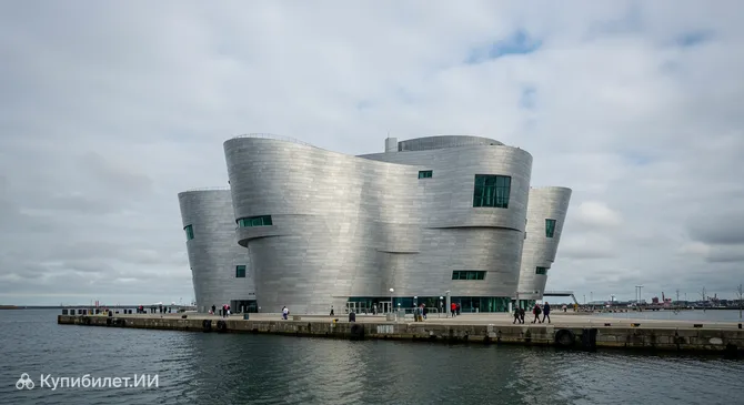 Одной из главных особенностей «Голубой планеты» является его уникальная архитектура. Здание, спроектированное датской студией 3XN, напоминает гигантский серебристый водоворот, раскинувшийся на берегу пролива Эресунн. Фасад полностью покрыт тысячами мелких алюминиевых пластин ромбовидной формы, которые создают иллюзию движения воды и придают сооружению футуристический вид. Эта сложная спиралевидная конструкция не имеет аналогов в мире.