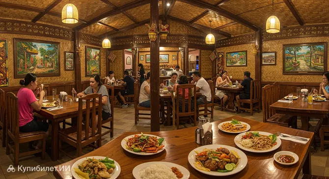 Для приятного ужина можно рассмотреть ресторан Иппон Яри, известный своей кухней и атмосферой. В упомянутом Сити Каламба Молл и Торговом центре Кабуяо вы найдете разнообразные фуд-корты, рестораны с местной и интернациональной кухней, а также места для отдыха и развлечений, включая караоке.