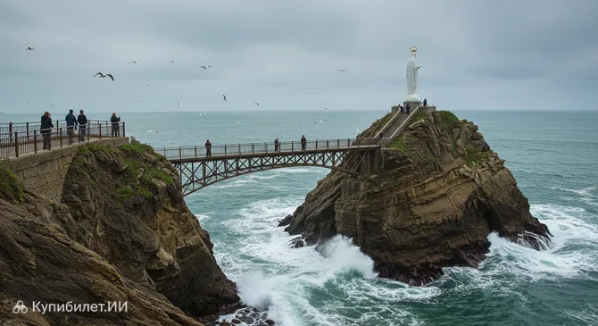 Посещение Скалы Девы Марии — обязательный пункт программы для любого гостя Биаррица. Со смотровой площадки на вершине открываются поистине захватывающие панорамные виды. Отсюда можно любоваться всем побережьем Басков, просторным заливом Биаррица, знаменитым пляжем Гранд-Плаж, а в ясную погоду на горизонте виднеются даже величественные Пиренеи. Это идеальное место, чтобы ощутить мощь океана, сделать незабываемые фотографии и почувствовать уникальную атмосферу этого курортного города.