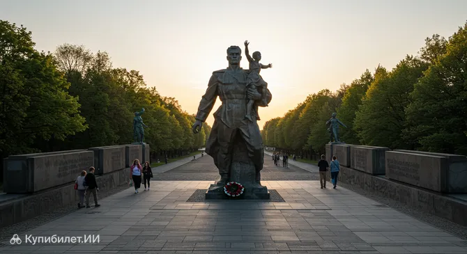 Прогулка по Трептов-парку подарит множество приятных впечатлений. Здесь можно полюбоваться на искусственный Карпов пруд, в который когда-то была запущена рыба, или пройтись по Пушкинской аллее, усаженной платанами с густыми кронами. Живописные пейзажи и спокойная атмосфера делают это место идеальным для неспешных прогулок, пикников и занятий спортом на свежем воздухе.