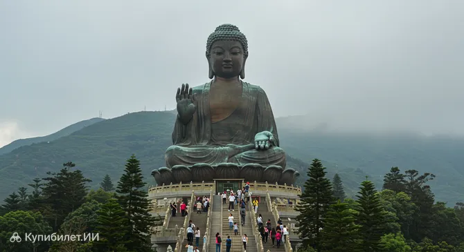 На острове Лантау возвышается величественный Тяньтань Будда – огромная бронзовая статуя сидящего Будды. Это одно из самых значимых буддийских святынь региона и популярное место паломничества и туризма. Чтобы добраться до статуи, нужно преодолеть 268 ступеней, а у ее подножия расположен живописный монастырь По Лин. Поездка сюда часто совмещается с посещением канатной дороги Нгонг Пинг 360, предлагающей потрясающие виды.