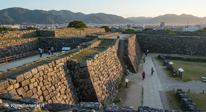 Руины замка Кофу – это впечатляющий исторический комплекс, расположенный в городе Кофу, в префектуре Яманаси, Япония. Это место, также известное под поэтичным названием «Майдзуру» (Танцующий журавль) из-за изящного вида его архитектурных элементов, напоминавших расправляющего крылья журавля, является обязательным пунктом для всех, кто интересуется японской историей и фортификационным искусством.