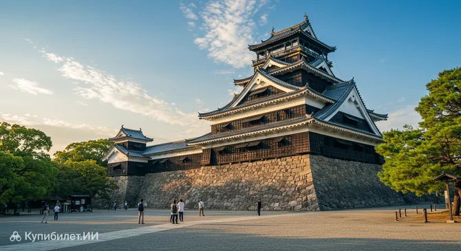 Одной из самых знаковых достопримечательностей является, без сомнения, Замок Кумамото. Это один из трех самых известных и впечатляющих замков Японии, славящийся своей мощной и сложной оборонительной архитектурой. Особенно известны его высокие изогнутые каменные стены "муша-гаэси" (отпугивающие воинов). Несмотря на повреждения, полученные во время землетрясений, замок активно восстанавливается и остается несокрушимым символом города. Посещение замка позволяет прикоснуться к самурайской истории, увидеть уникальные фортификационные сооружения и насладиться панорамными видами на город. Наблюдение за процессом реставрации само по себе является свидетельством японской стойкости и мастерства.