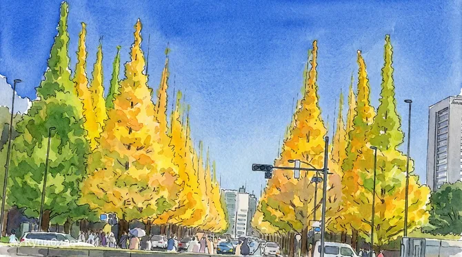 Аллея гинкго Мэйдзи Дзингу Гайэн — это одна из самых узнаваемых и живописных природных достопримечательностей в Токио. Расположенная на границе районов Синдзюку и Минато в Японии, она представляет собой великолепный 300-метровый коридор, образованный 146 величественными деревьями гинкго, высаженными с безупречной симметрией.
