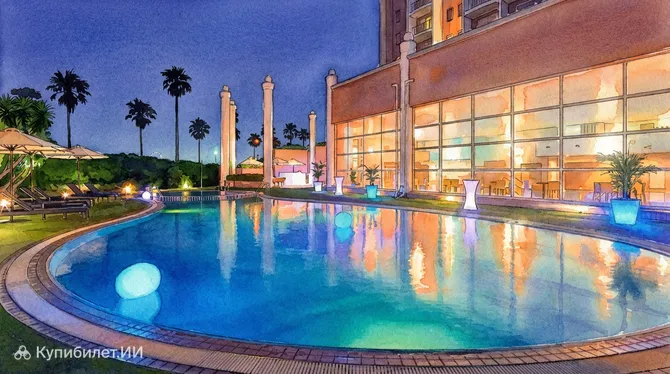 Главной архитектурной гордостью отеля является его колоссальный девятиэтажный атриум высотой 37 метров. Это одно из крупнейших подобных пространств в стране: через стеклянную крышу внутрь проникает мягкий солнечный свет, создавая ощущение прогулки по уютному европейскому городку. Внутри атриума царит атмосфера спокойствия и света, которая мгновенно переносит гостей из суетливого мегаполиса в мир отдыха.