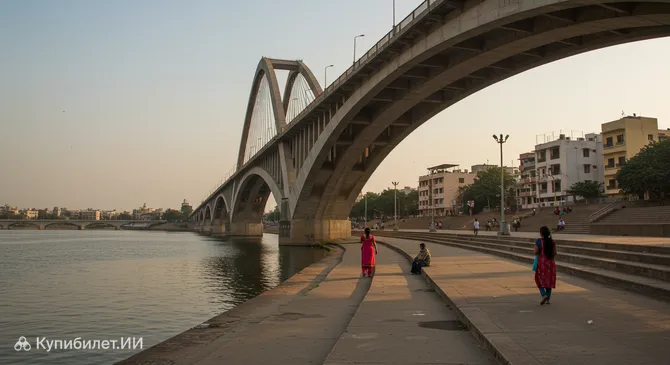 Мост Неру, ставший неотъемлемой частью этого ансамбля, играет ключевую роль как транспортная артерия и популярное место для пешеходных прогулок, элегантно соединяя восточную и западную части Ахмедабада. Это не просто инженерное сооружение, а важный символ современного облика города.