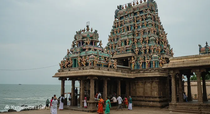 Архитектурный облик храма выполнен в характерном классическом южноиндийском стиле. Здание украшено множеством красочных скульптур, изображающих божеств и мифологические сюжеты. Особое внимание привлекает гопурам – высокая надвратная башня с богато декорированным фасадом, которая возвышается над главным святилищем и является визитной карточкой многих храмов Южной Индии.