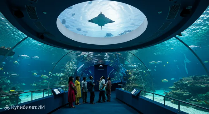 Приготовьтесь к погружению в удивительный подводный мир в аквариуме «Морское королевство» (VGP Marine Kingdom), расположенном в оживлённом городе Ченнаи. Это не просто аквариум, а крупнейший в Индии подобный комплекс, главной изюминкой которого является впечатляющий подводный туннель. Прогулка по нему создает полное ощущение присутствия на морском дне, в окружении проплывающих мимо акул, скатов и тысяч разноцветных рыб.
