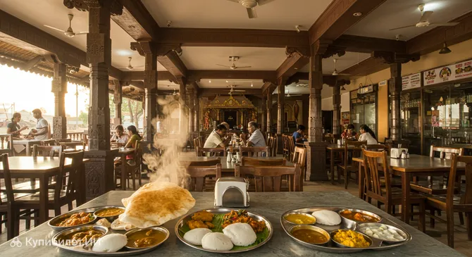 Чтобы дополнить впечатления от посещения города, стоит заглянуть в местные заведения. Например, ресторан Шри Кришна Вилас предлагает гостям отведать классические блюда южно-индийской кухни. Это отличное место для знакомства с гастрономическими традициями региона в аутентичной обстановке.