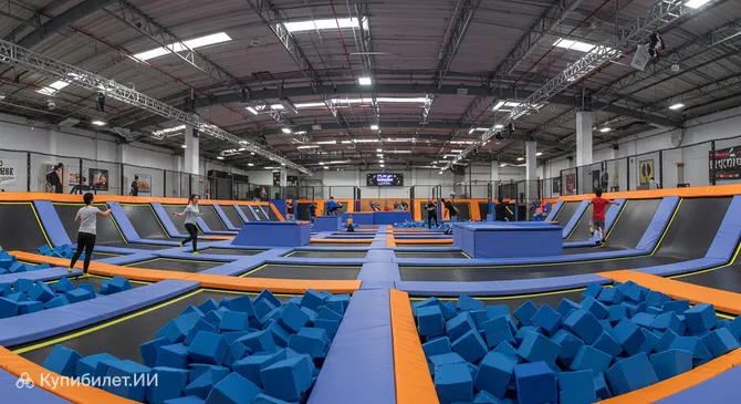 Внутри парка вас ждет множество батутов различной конфигурации. Здесь можно свободно прыгать, оттачивать акробатические трюки или просто весело проводить время в компании друзей и семьи. Пространство организовано таким образом, чтобы каждый посетитель, независимо от возраста и уровня физической подготовки, нашел для себя что-то интересное и увлекательное.