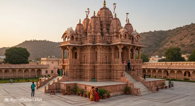 Храмовый комплекс уютно расположился на холме Лакшман Дунгри, среди живописных гор Аравали. Такое расположение открывает посетителям великолепные панорамные виды на окрестности, что делает визит сюда особенно запоминающимся. Многие приезжают сюда, чтобы полюбоваться восходами и закатами. Здание храма, построенное в традиционном раджпутском стиле, гармонично вписывается в природный ландшафт.