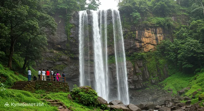Главная особенность водопада — его впечатляющая высота и мощный поток воды, который каскадом спускается по скалам. Особенно полноводным и зрелищным он становится в сезон муссонов. В это время можно в полной мере оценить силу и величие природы, наблюдая, как бурные потоки с грохотом обрушиваются вниз.