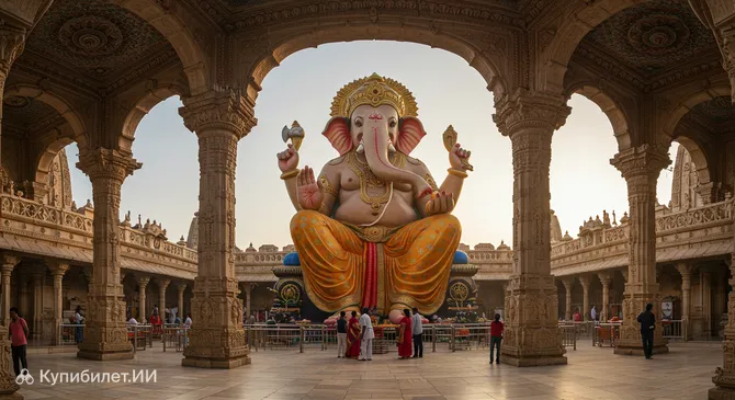 Главной достопримечательностью и сердцем храма является уникальная и впечатляющая статуя Ганеши. Она известна своими гигантскими размерами и считается одной из самых больших статуй этого божества в Индии. Статуя выполнена из особой смеси, включающей различные металлы и священные материалы, что придает ей особую ценность и почитание. Именно эта величественная фигура привлекает множество верующих, особенно в дни проведения индуистских праздников.