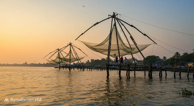 Китайские рыболовные сети, также известные под местным названием "чина-вала", – это поистине знаковая и удивительная достопримечательность города Кочи, расположенного в штате Керала, Индия. Эти огромные, изящно сконструированные сооружения протянулись вдоль северного берега Форта Кочин и неизменно привлекают взгляды, являясь одним из самых фотографируемых мест в регионе. Они стали настоящим символом города, где древние традиции гармонично сосуществуют с современностью.