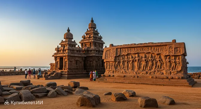 Группа памятников Махабалипурама — это выдающийся архитектурный ансамбль, расположенный на живописном Коромандельском побережье в городе Махабалипурам, в южной части Индии. Этот комплекс, включенный в список Всемирного наследия ЮНЕСКО, представляет собой уникальное собрание древних храмов, пещерных святилищ и монументальных скульптур, высеченных прямо из гранитных скал.
