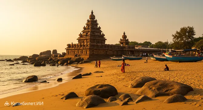 Пляж Махабалипурам — это живописная полоса золотистого песка на побережье Бенгальского залива, расположенная в древнем городе Махабалипурам на юге Индии. Это место славится не только своей природной красотой и широкими просторами, но и уникальной атмосферой, где океан встречается с многовековой историей. Пляж привлекает путешественников, желающих совместить расслабленный отдых у воды с исследованием культурного наследия.